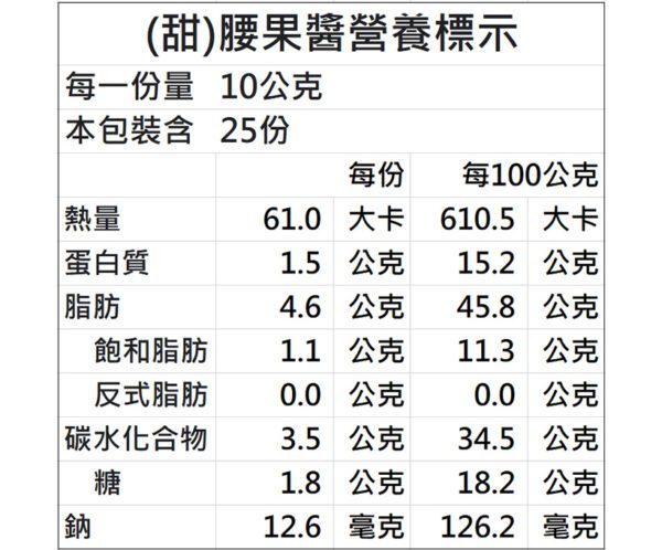 品 名:腰果醬(甜)