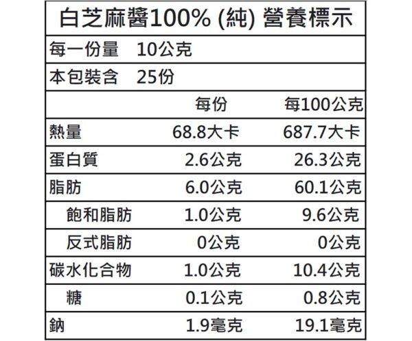 品 名:白芝麻醬100%(純)